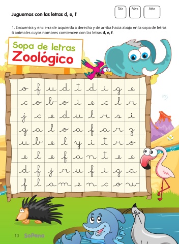 6 animales cuyos nombres comiencen con las letras d, e, f.