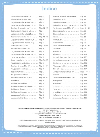 Abecedario en mayúsculas. . . . . . . . . Pág. 4 Artículos definidos e indefinidos . . . Pág. 71