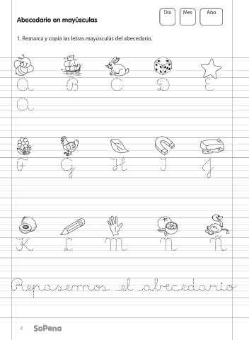 Día Mes Año Abecedario en mayúsculas 1. Remarca y copia las letras mayúsculas del abecedario. A B C D E A F G H I J K L M N Ñ Repasemos el abecedario 4 5
