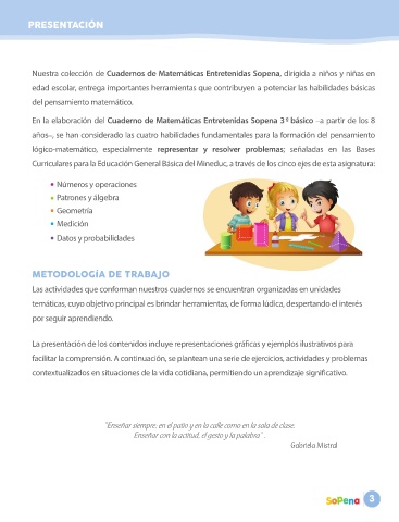 En la elaboración del Cuaderno de Matemáticas Entretenidas Sopena 3 básico a partir de los 8